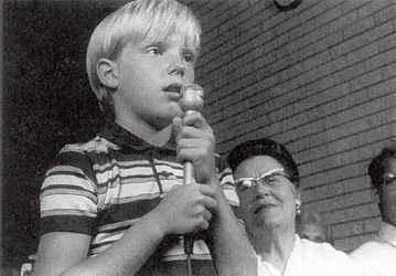 Children, like adults, express their beliefs and feelings about the gospel of Jesus Christ during monthly testimony meetings (Orem, Utah, 1982). Courtesy Floyd Holdman.