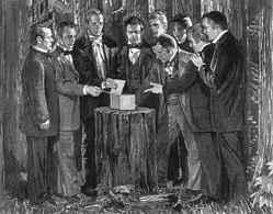 A June 1829 revelation confirmed that Oliver Cowdery, David Whitmer, and Martin Harris would be the Three Witnesses (D&C 17). Soon thereafter, they, with Joseph Smith, retired to the woods near Fayette, New York, and prayed for the promised divine manifestation. The "Testimony of Three Witnesses" summarizes the supernatural event that followed, when an angel appeared and showed them the plates and engravings and they heard the Lord declare that the Book of Mormon was "translated by the gift and power of God." They said that the same divine voice "commanded us that we should bear record of it."