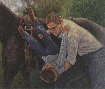 "Suddenly the horse stopped, and I became aware that someone was holding the bridle tightly and attempting to calm the quivering animal. Almost immediately I was snatched up into the arms of my father.