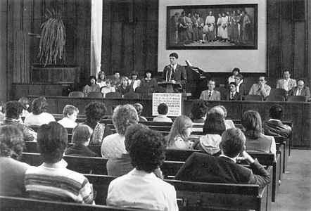 One of the most effective missionary tools the members used to present the message of the Church was a theatrical presentation, "The Gate," written by Ana Glucia Ceciliato and presented to more than 20,000 people at the open house for the Sao Paulo Temple before it was dedicated. To make the presentation required some sixty talented Church children, youth, and adults to travel many miles from several cities to Sao Paulo for rehearsals. The introduction of the Church seminary and institute programs also greatly strengthened the youth of the Church in Brazil.