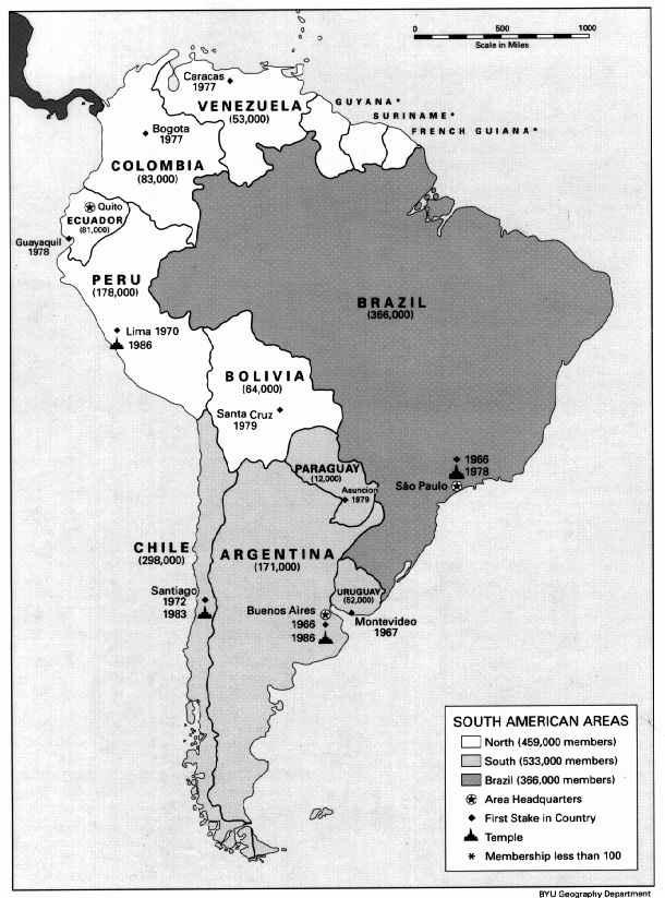 The Church of Jesus Christ of Latter-day Saints in South America as of January 1, 1991.