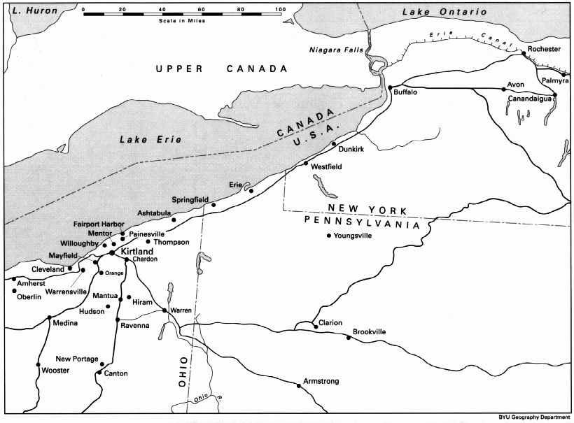 In October 1830 four LDS missionaries on their way to preach to the Indians west of Missouri (see Lamanite Mission) introduced the restored gospel to the communities of northeastern Ohio. Before they resumed their journey, the missionaries baptized approximately 130 converts, organized the new members into small "branches," and appointed leaders over each group. Approximately thirty-five of these members lived in Kirtland, Ohio, a community directly east of what is today metropolitan Cleveland.