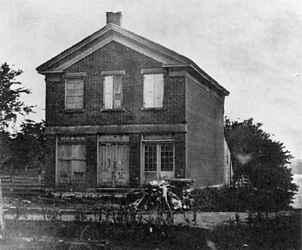 Joseph Smith's red brick store (1885; built, 1842; restored, 1978-1979) was an important building during the Nauvoo period. It was a center of social, economic, political, and religious activity. Joseph Smith's office and meeting room on the second floor became the headquarters of the Church, and the first endowments were given there. In 1842, the Relief Society was organized there. B. H. Roberts collection.