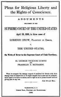 Two appeals to the U.S. Supreme Court by Lorenzo Snow regarding "cohabitation" were dismissed on jurisdictional or procedural, grounds. However, Snow's arguments, published in this 1886 document, maintained that his case turned, not on procedure, but on basic religious freedoms and rights of conscience, as had the earlier case of Reynolds v. United States. Courtesy John W. Welch.