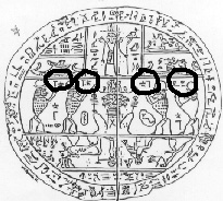 But one thing I neglected to mention that is noteworthy about the apes is their worshipful attitude. In the hypocephalus below I have circled the four sets of hieroglyphs in it to illustrate the idea.