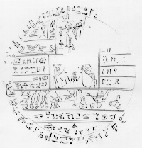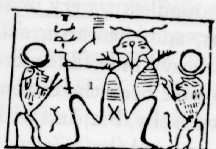 I.E.S. Edwards notes that a Pyramid Text, spell 508 says that the king mounts up to heaven on the rays of the sun. Interestingly, it says "I mount up to that of my mother, the living Uraeus on the brow of Re. The Uraeus being the sacred cobra, and a very important headdress worn by the Egyptians.7 Another scholar informs us that the daughter of Ramessu VI married the high priest of the god Amun-Re. She wore the sacred asp or viper crown as a symbol of her sovereignty. It was in this manner that the priestly line gained its authority (Cf. Abr. 1:24 where the woman sets up the man as the one in charge).8 In another text we read that Firdausi in a book dealing with the 1,000 (a number that intrigued the ancient Egyptians and is noted in JS Hypo as well discussed in detailed length below) year reign of Dahak noted that out of his shoulders grew two serpents.9 Interesting that scholars have discovered that the serpent is clearly and usually associated with creation from the primeval abyss, or sea. In Egypt the Ogdoad, the 8 original deities to come forth out of the chaos were four frog deities and four snake deities, again associating snakes with creation with Nun, the primeval waters, exactly as does Joseph Smith in his hypocephalus.10 Interestingly in Egyptian ancient thought there was a dark snake as well as a light snake. The two represented duality and opposites.11 And true to form, Joseph Smith makes sure there are two snakes, which according to Egyptologists represents duality. In line with the two headed deity to be sure. This duality is simultaneously creative and destructive and we further read that "As a symbol of duality, the serpent represents intellect, the faculty by which man discriminates - that is to say, by which we break down the whole into its constituent parts." Nay, Smith nailed it by saying this was "first in government." 12 In fact, it is generally acknowledged that the snake is associated quite closely with the sun, and in fact we are told that "Helios was the first-born snake."13 So Joseph Smith having the two snakes in the central panel is precisely exact. In fact, one of the Egyptian hieroglyphs is just such a two-headed snake.14 (Cf. note 29 below many sources concerning snakes, creation, waters of Nun, etc.) And where on earth would Joseph Smith have cooked this thing up from? Back to the Qerti hieroglyph, what I find most interesting is that it is indeed just what Harris says it is. We find on a hymn to Amun (Amon) on a Leiden Papyrus just this exact idea.