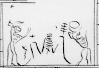 Joseph Smith identified the apes as stars receiving light from Kolob. As Harris notes, "Since babboons go ape when the sun rises, i.e. they scream, do summer saults, etc., they are appropriate signs of the morning stars welcoming the new born sun. The inscription above found in the British Hypo pictured, 8445a, indicate the apes function as adoring the rising sun. Samuel Birch says that this inscription means the god is adored four times (the four strokes), because there are four apes in this particular hypo." Harris also notes that Budge says these signs are a late form of tua neter, "the stars of the god" (from Book of the Dead 109, 110). Jan Assman also noted that the apes ("Paviane") worship the deity, "verkündende und preisende Geleitgötter", announcing and praising the convoy-God.33 When the babboons announce Re, the "Große Gott", Grosse Gott, or the Great God, they also are ecstatic around him. We are told they " erscheinen, nachdem er entstanden ist indem sie zu beiden Seiten dieses Gottes sind bei seinem Aufgang im östlichen Lichtland des Himmels. Sie tanzen für ihn, sie springen für ihn, sie singen für ihn, sie musizieren für ihn, sie vollführen für ihn Freudenlärm" i.e. They appear, after he [Re] has originated, in that they are to both sides of this God at his ascent in the eastern light-country of the heaven. [Cf. the JS Hypo] They dance for him, they jump for him, they sing for him, they make music for him, they execute joy-noise for him. Interestingly this is when Re appears in the underworld also.34 i.e. they worship Re, exactly as we see in the JS Hypo.