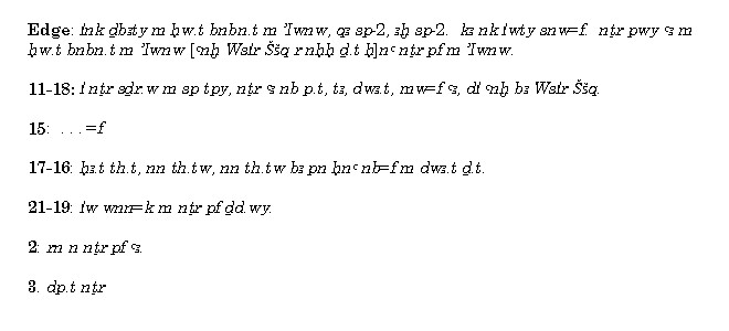 23. Emending to nn th.tw h3t tn. Similar passages, but even more garbled, are found in the British Museum Hypocephali 8445c, 3445f, and 37909.